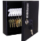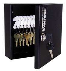Can be used as either a drawer safe or key box. As a key box, it can easily be fastened to a wall. Includes 10 key rack with 10 key tags. Includes key lock.