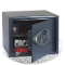 Conveniently sized burglary resistant home security safe / electronic hotel room safe with state of the art commercial grade digital electronic locking system and lighted blue lcd display. Re-programmable combination, high security key override, dual live bolts and made of heavy gauge steel. Also featuring drilled anchor holes and approximately .75 cubic feet of storage capacity. Get the same convenient burglary protection of a hotel security safe in your home.